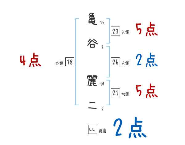 亀谷麗二さんの画数の鑑定結果
