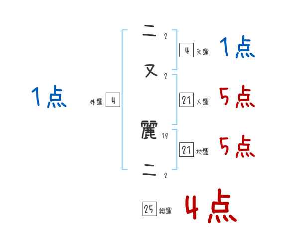 二又麗二さんの画数の鑑定結果