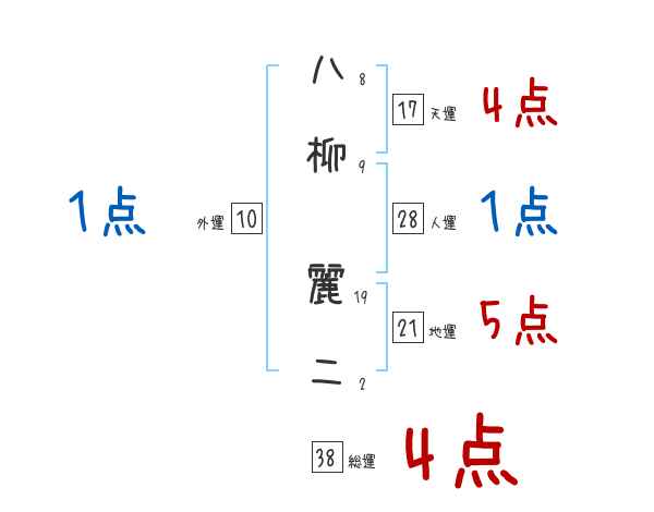 八柳麗二さんの画数の鑑定結果