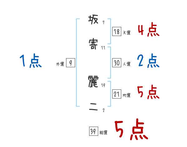 坂寄麗二さんの画数の鑑定結果