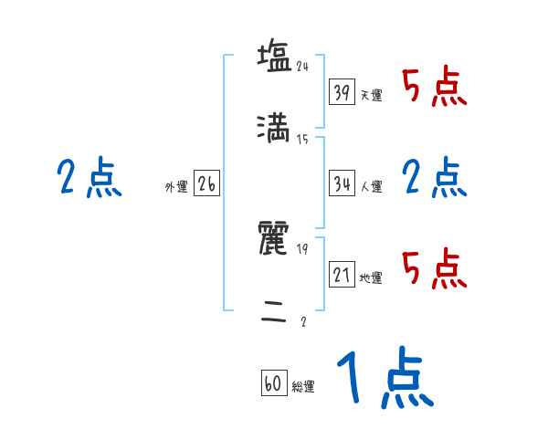 塩満麗二さんの画数の鑑定結果