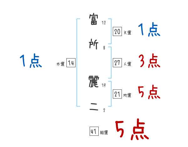 総運![]() | 富所麗二さんの総運は41画の5つ星!大志を抱き、目標に向かって実力を発揮し達成する。温和な性格。 あなたの人生を表す1番重要な運勢です。生涯を通じて影響する総合運となり、主に50歳以降の晩年期に影響を及ぼします。 |