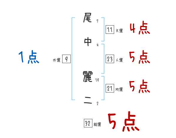 尾中麗二さんの画数の鑑定結果