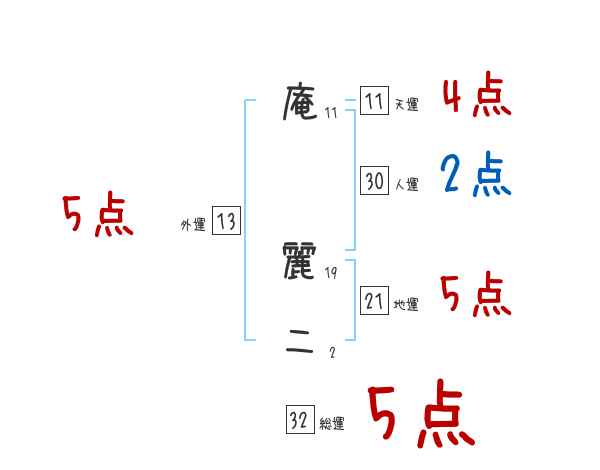 総運![]() | 庵麗二さんの総運は32画の5つ星!柔軟性があり成功する。チャンスが多く金運が良い。 あなたの人生を表す1番重要な運勢です。生涯を通じて影響する総合運となり、主に50歳以降の晩年期に影響を及ぼします。 |