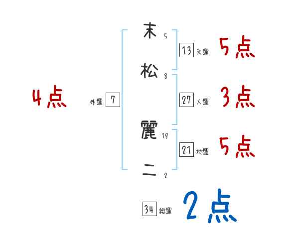 末松麗二さんの画数の鑑定結果
