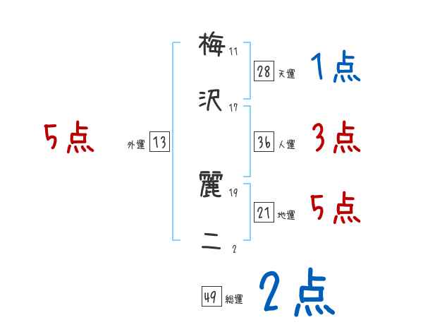 梅沢麗二さんの画数の鑑定結果