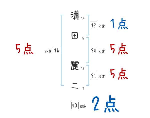 溝田麗二さんの画数の鑑定結果