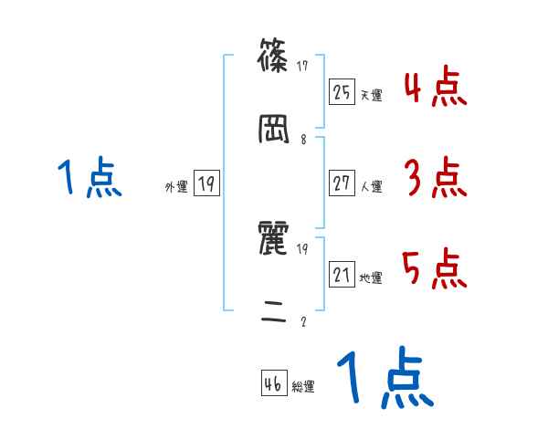 篠岡麗二さんの画数の鑑定結果