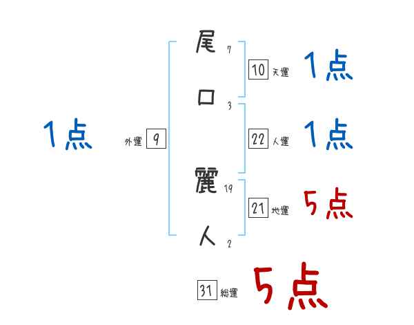 尾口麗人さんの画数の鑑定結果