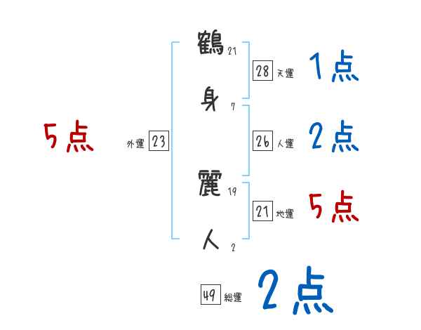 鶴身麗人さんの画数の鑑定結果