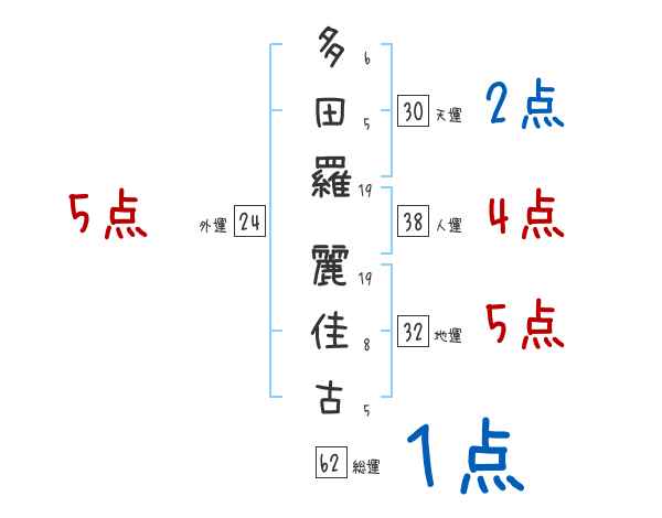 多田羅麗佳古さんの画数の鑑定結果