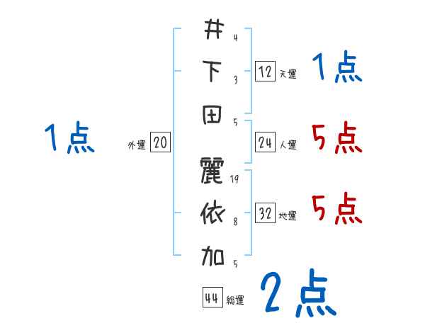 井下田麗依加さんの画数の鑑定結果
