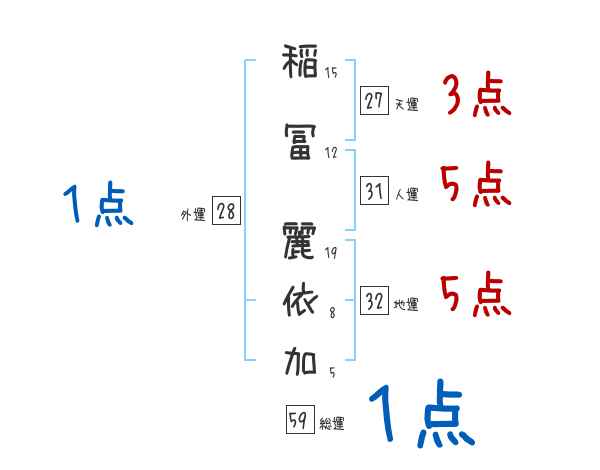 稲冨麗依加さんの画数の鑑定結果