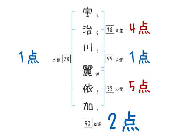 宇治川麗依加さんの画数の鑑定結果