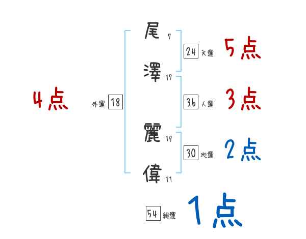 尾澤麗偉さんの画数の鑑定結果