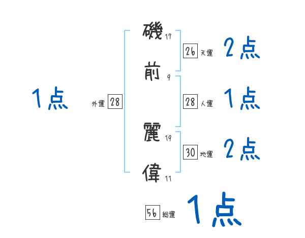 磯前麗偉さんの画数の鑑定結果