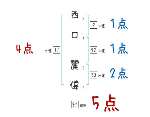 西口麗偉さんの画数の鑑定結果