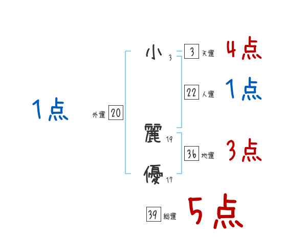 小麗優さんの画数の鑑定結果