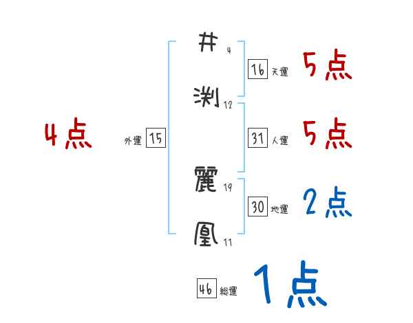 総運![]() | 井渕麗凰さんの総運は46画の1つ星!迷走することが多く苦労するかも。目先のことにとらわれないように。 あなたの人生を表す1番重要な運勢です。生涯を通じて影響する総合運となり、主に50歳以降の晩年期に影響を及ぼします。 |