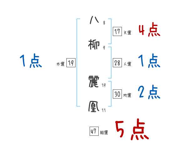 八柳麗凰さんの画数の鑑定結果