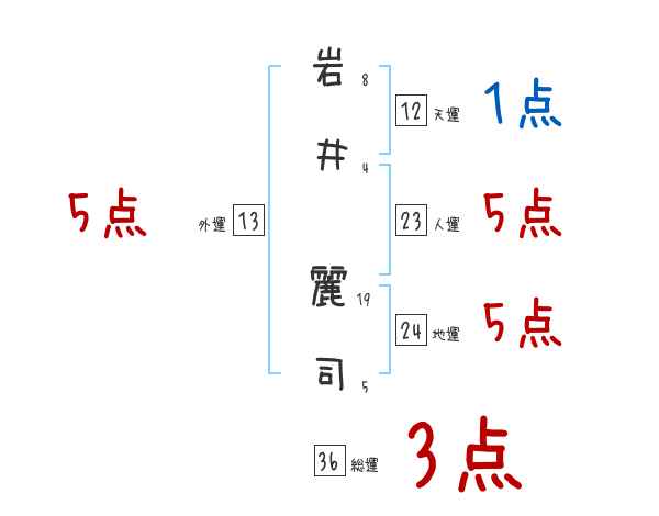 岩井麗司さんの画数の鑑定結果