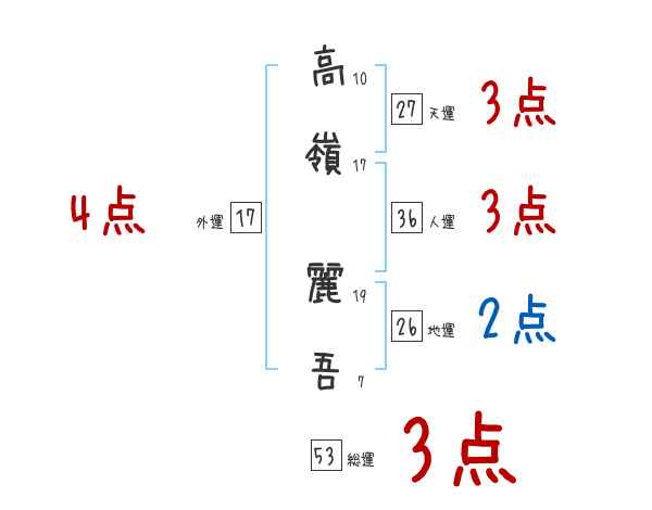 高嶺麗吾さんの画数の鑑定結果