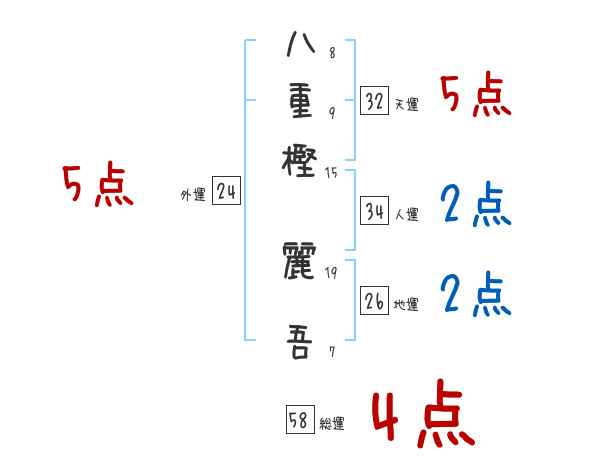 天運![]() | 八重樫麗吾さんの天運は32画の5つ星!柔軟性があり成功する。チャンスが多く金運が良い。 家系が持つ宿命的な運勢を表します。祖先から受け継いだ苗字ですので自分の力が及びません。家柄を象徴します。 |