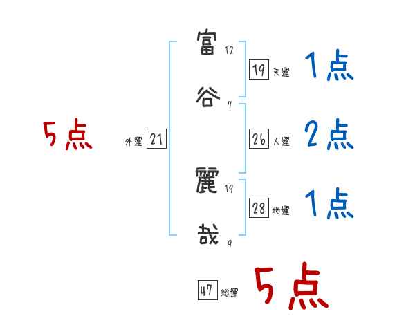 富谷麗哉さんの画数の鑑定結果