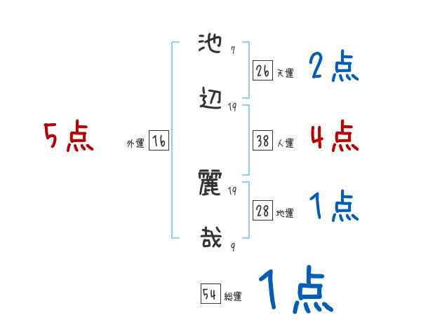 外運![]() | 池辺麗哉さんの外運は16画の5つ星!人望が厚く大きく発展する。逆転成功が見える。 生活面を象徴する運勢です。外部から受ける影響力を表し、結婚運、家庭運や職場、環境への順応性を表します。 |