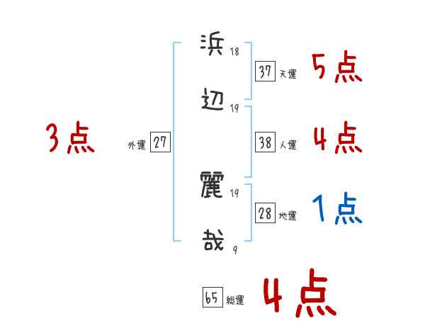 浜辺麗哉さんの総運は65画の4つ星