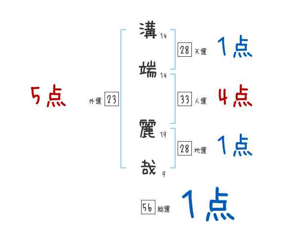 溝端麗哉さんの画数の鑑定結果