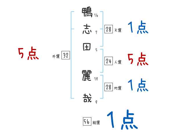 鴨志田麗哉さんの画数の鑑定結果