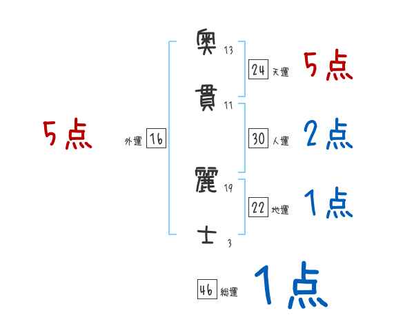 奥貫麗士さんの画数の鑑定結果