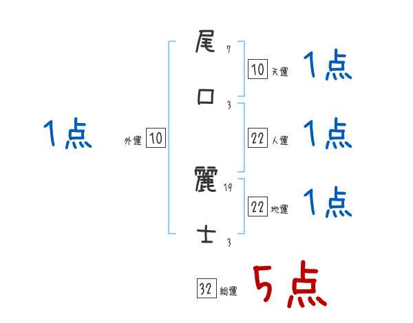 尾口麗士さんの画数の鑑定結果