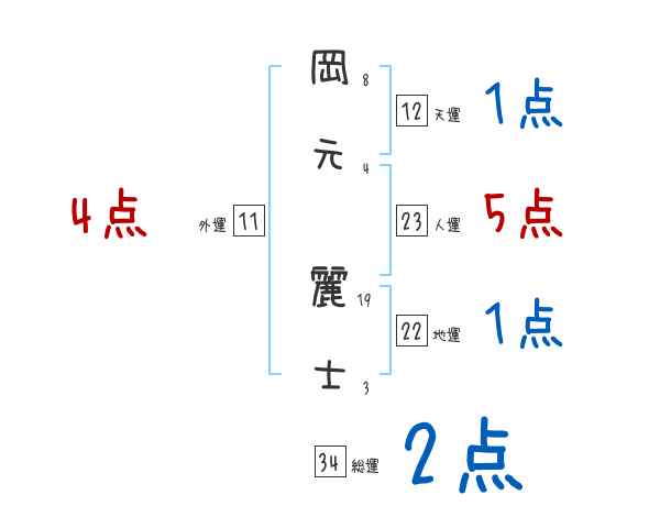 岡元麗士さんの画数の鑑定結果