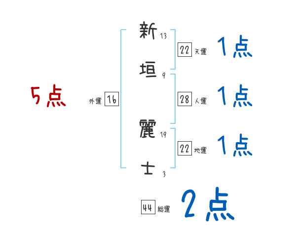 新垣麗士さんの画数の鑑定結果