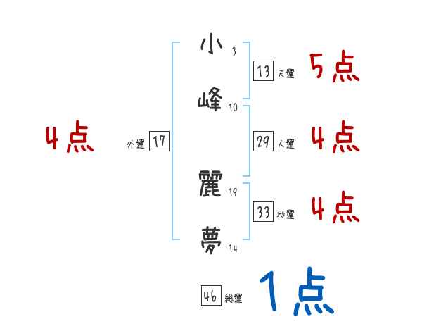小峰麗夢さんの画数の鑑定結果