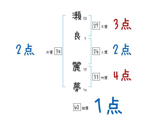 家系が持つ宿命的な運勢を表します。祖先から受け継いだ苗字ですので自分の力が及びません。家柄を象徴します。