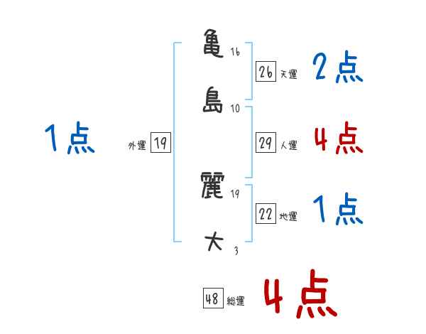 亀島麗大さんの画数の鑑定結果