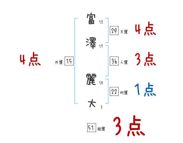 富澤麗大さんの画数の鑑定結果