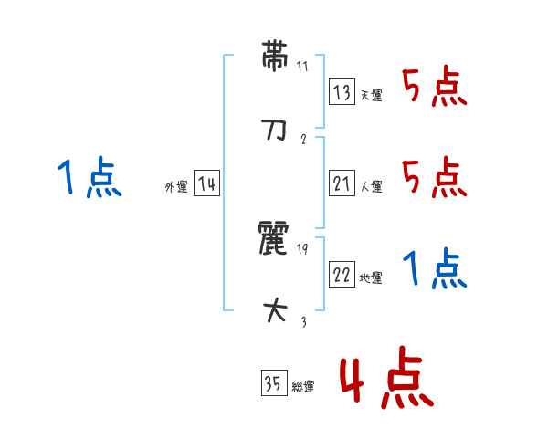 帯刀麗大さんの画数の鑑定結果