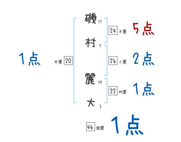 磯村麗大さんの画数の鑑定結果