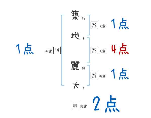築地麗大さんの画数の鑑定結果