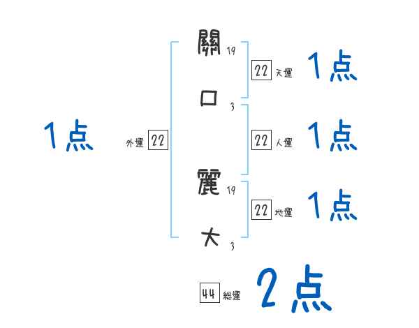 關口麗大さんの画数の鑑定結果