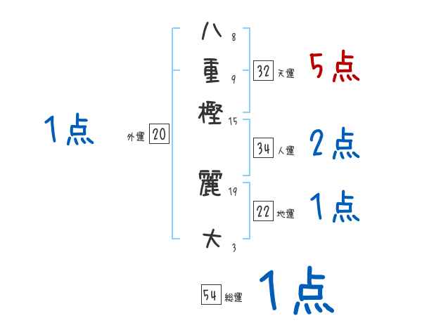 八重樫麗大さんの画数の鑑定結果