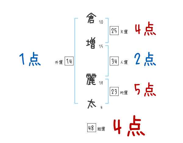 倉増麗太さんの画数の鑑定結果