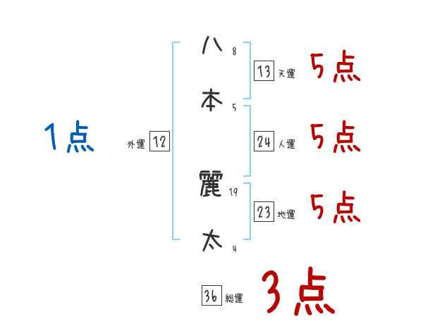 八本麗太さんの画数の鑑定結果