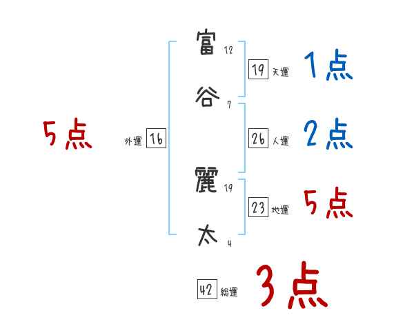 地運![]() | 富谷麗太さんの地運は23画の5つ星!想像力に優れ活力がある。一代で成功し名誉を手に入れる。 個性を表す基礎的な運勢です。性格形成や対人関係、行動力など家庭環境に影響されます。主に誕生してから20歳くらいまでの若年期の運勢を表します。 |