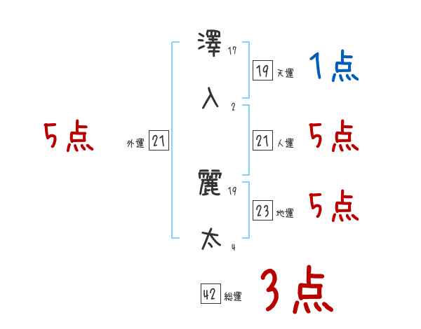 澤入麗太さんの画数の鑑定結果