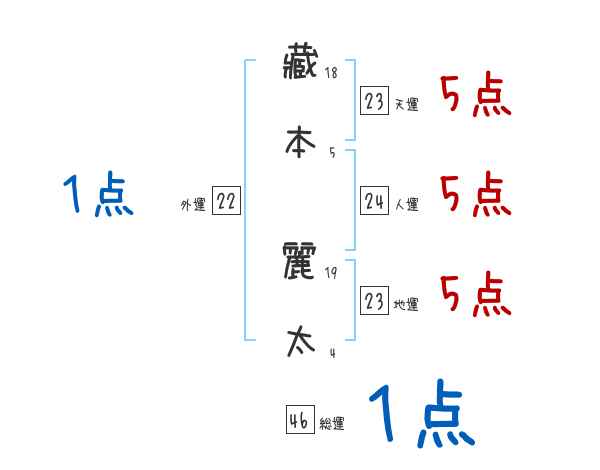 藏本麗太さんの画数の鑑定結果